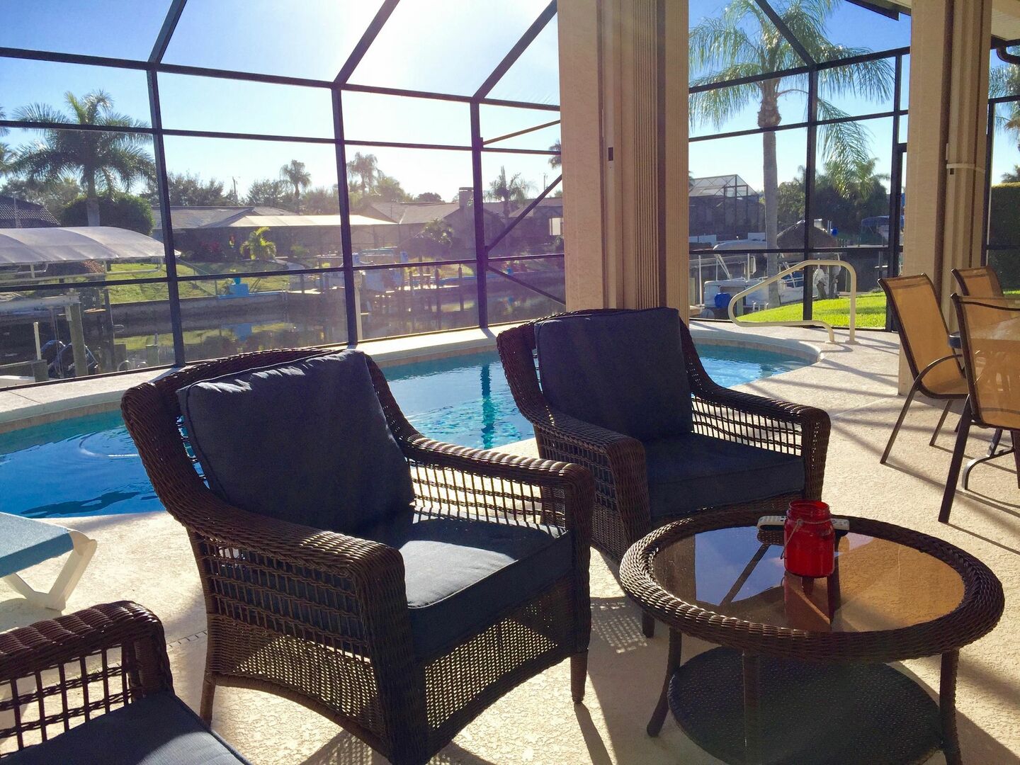 Das Ferienhaus erstreckt sich ebenerdig über ca. 160 m² klimatisierte Wohnfläche und befindet sich in sonniger Kanallage von Cape Coral.