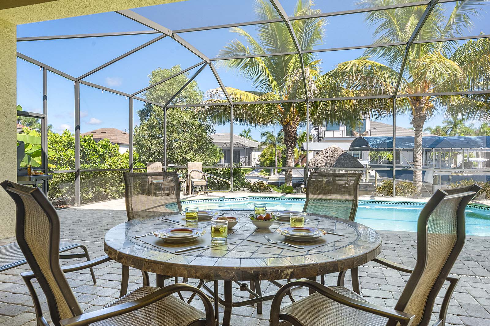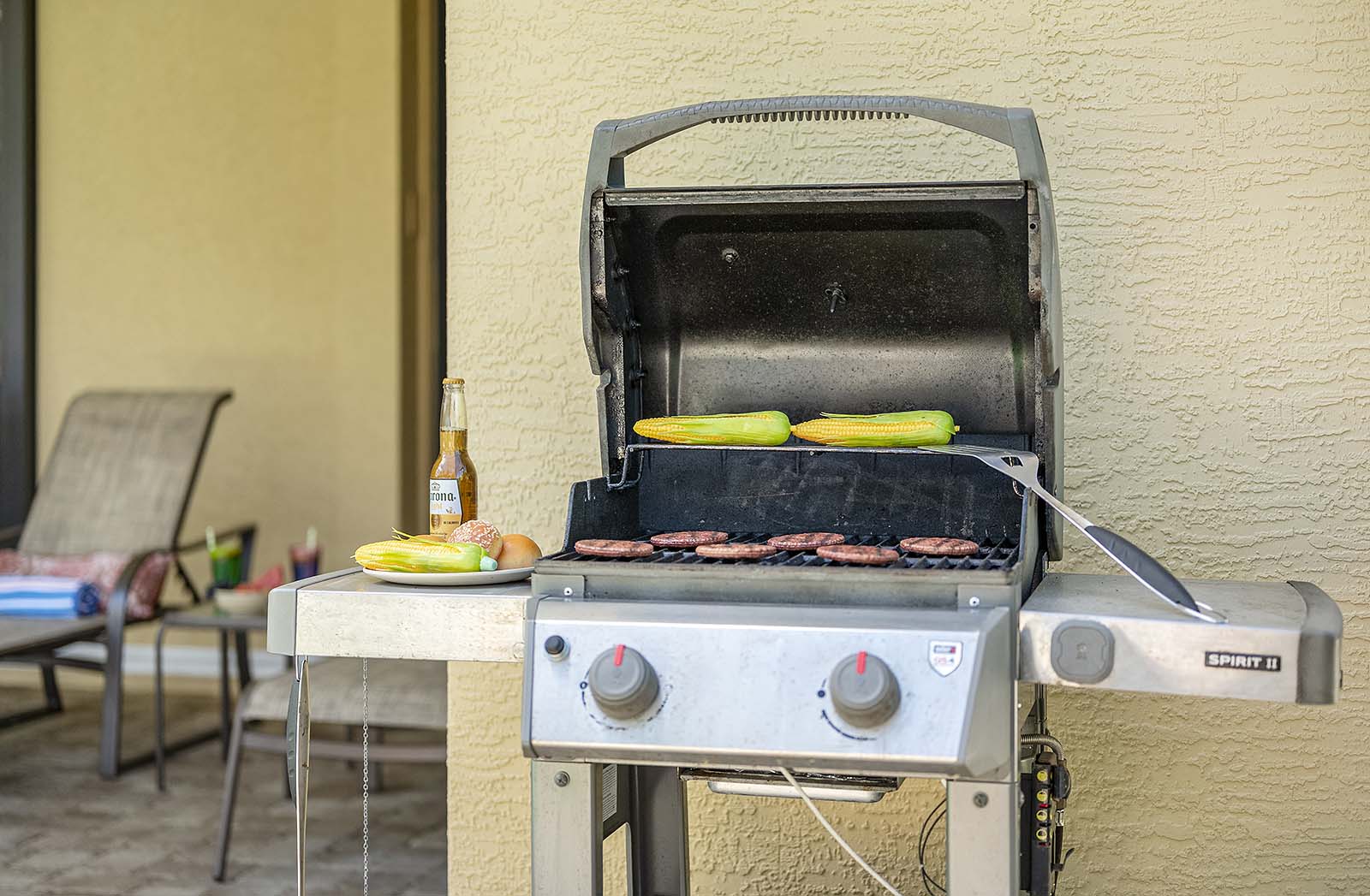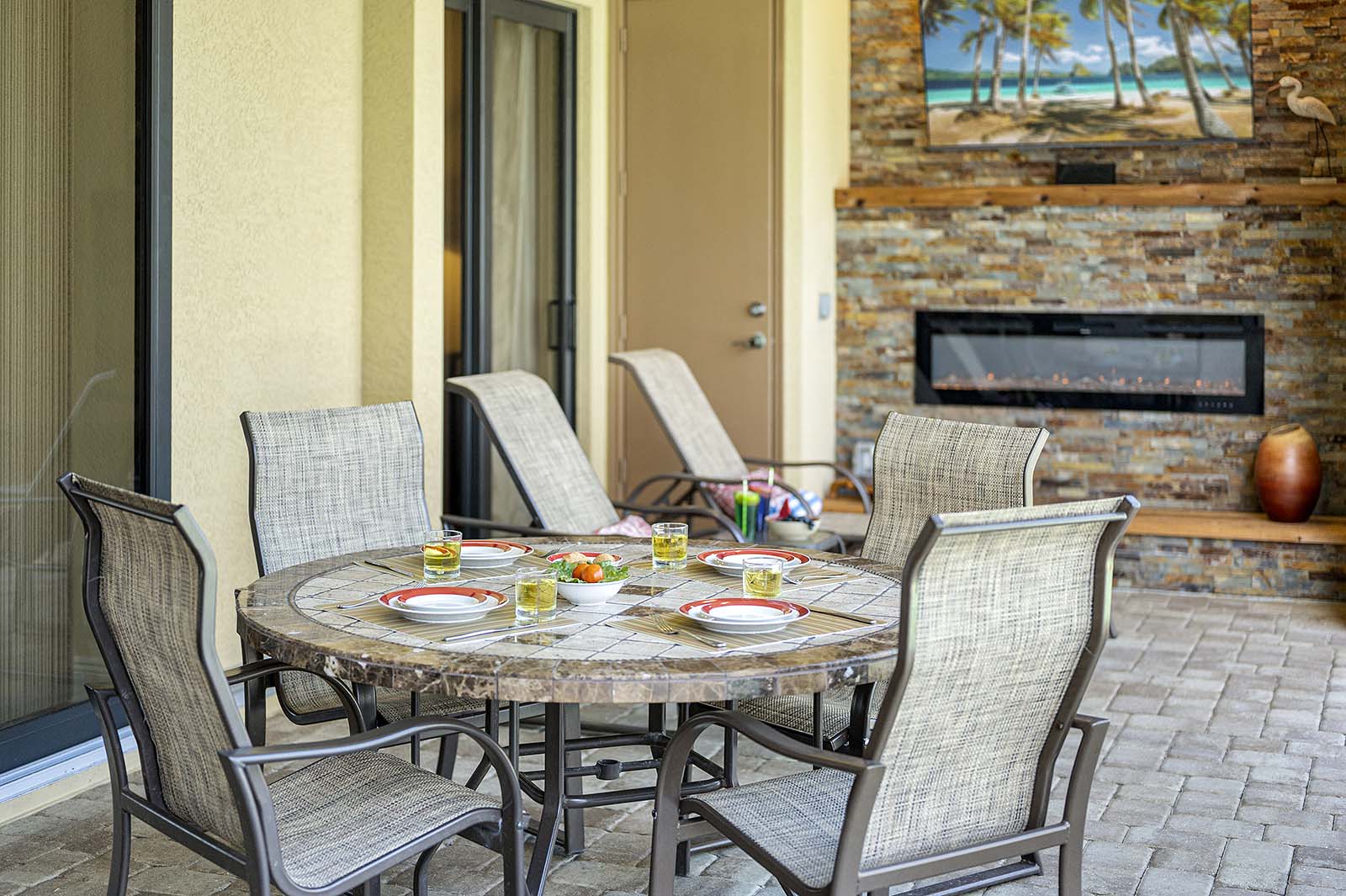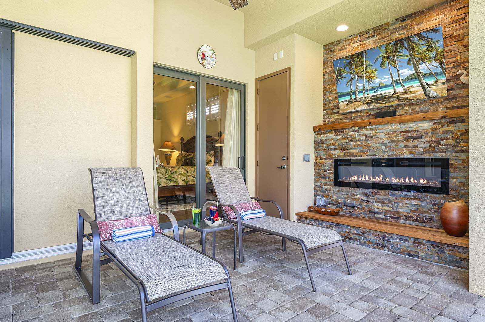 Unter dem Lanai befinden sich neben einem weiteren Esstisch auch ein weiterer TV. Ein Grill ist vorhanden, Sie können Sie sich ein leckeres BBQ zubereiten.