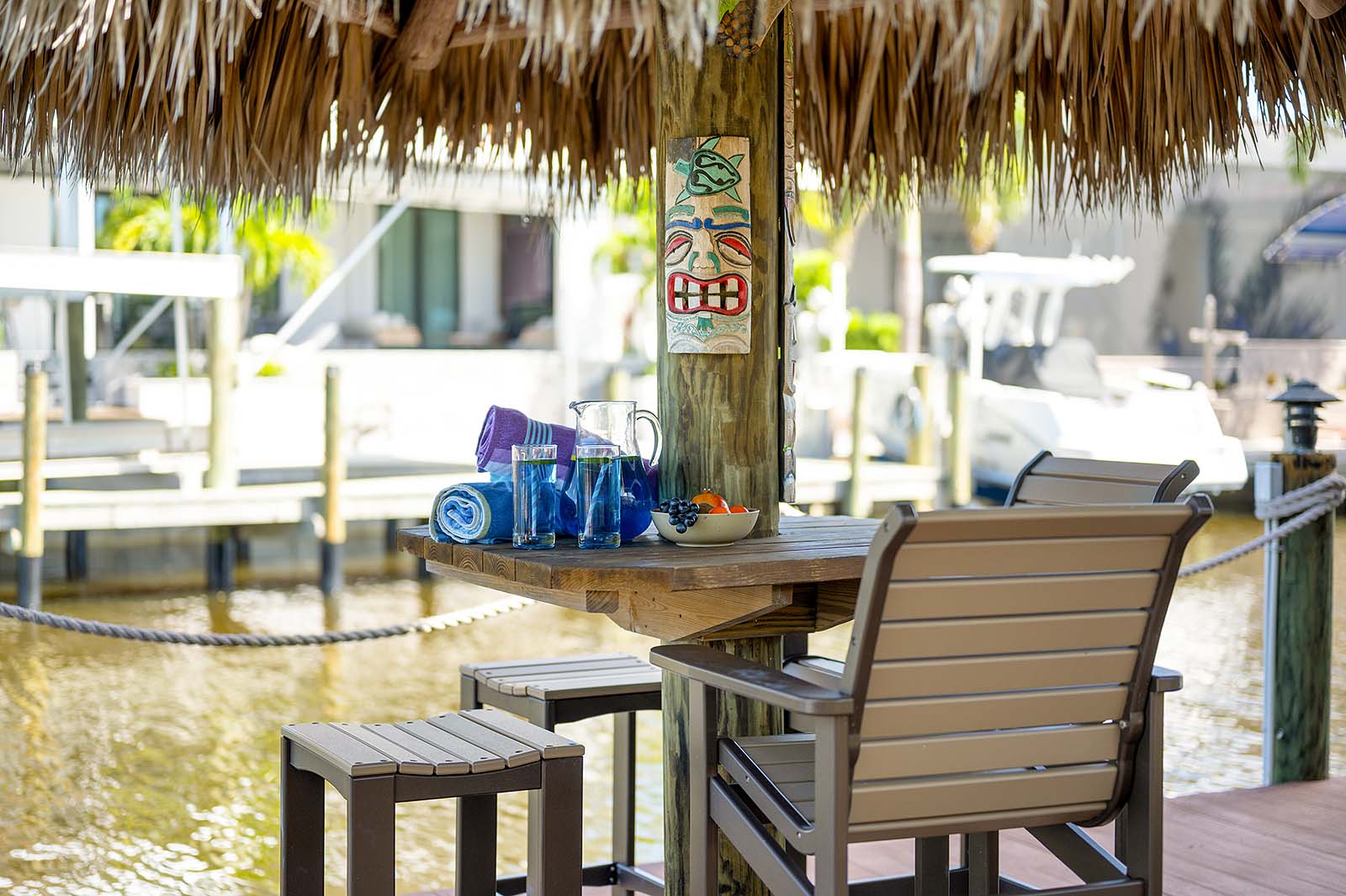 Auf dem Bootsdock befindet sich zudem ein TikiHut, unter dem Sie sich einen leckeren Cocktail schmecken lassen können oder aber einfach die Fische und Schildkröten füttern können.