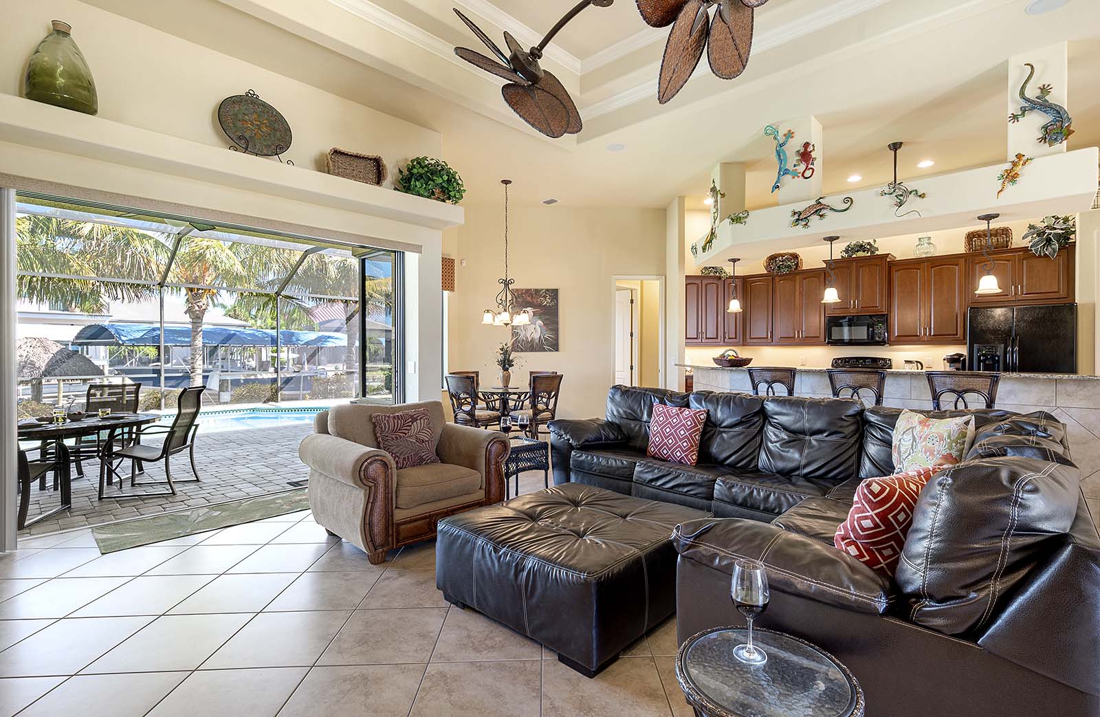Diese großzügig errichtete Ferienvilla befindet sich an einem Kanal und erstreckt sich ebenerdig über ca. 213 m² klimatisierte Wohnfläche.