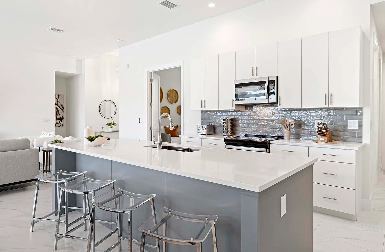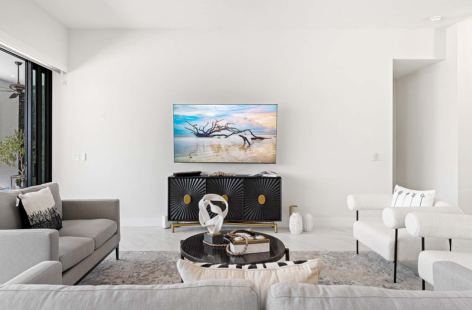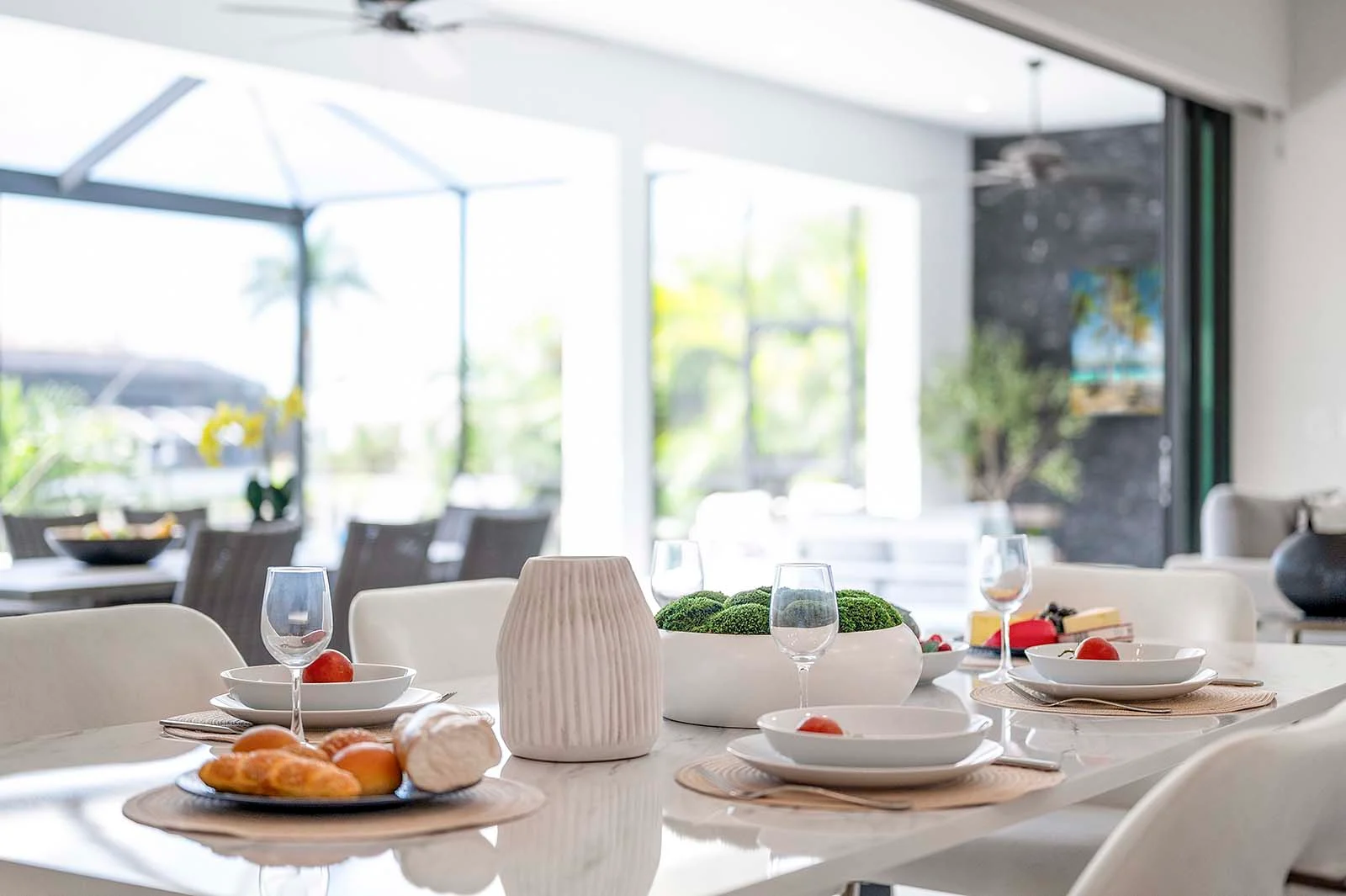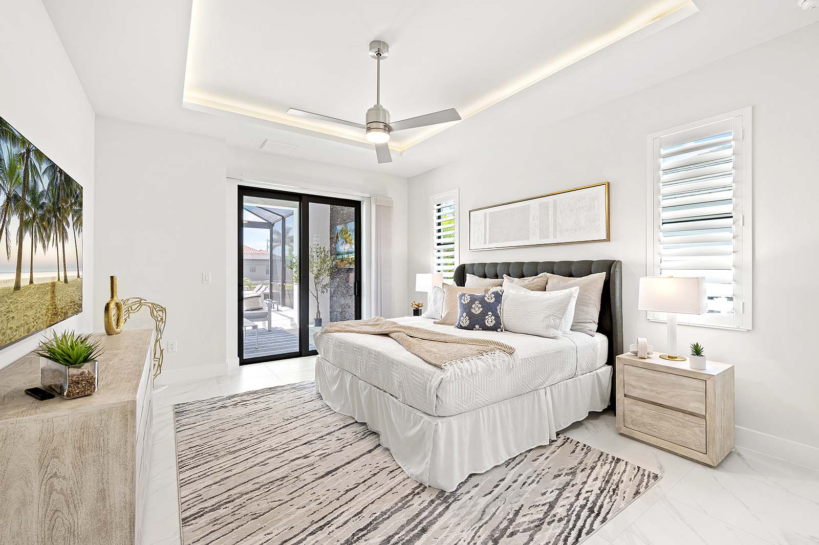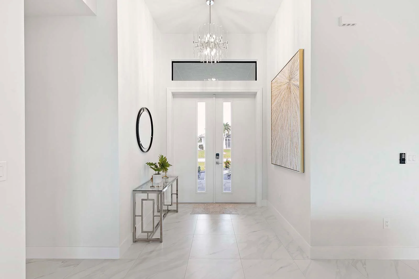 Die moderne Villa aus dem Jahr 2025 erstreckt sich ebenerdig über ca. 228 m² klimatisierte Wohnfläche und befindet sich an einem Kanal in ruhiger und bevorzugter Lage im Südwesten von Cape Coral.